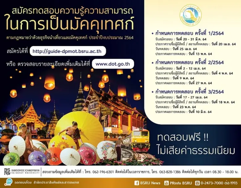 เตรียมพร้อมก่อนเปิดประเทศ กรมการท่องเที่ยว ร่วมกับ มรภ. บ้านสมเด็จเจ้าพระยา จัดสอบมัคคุเทศก์ประจำปี 2564 ยกระดับอุตสาหกรรมท่องเที่ยวใหม่