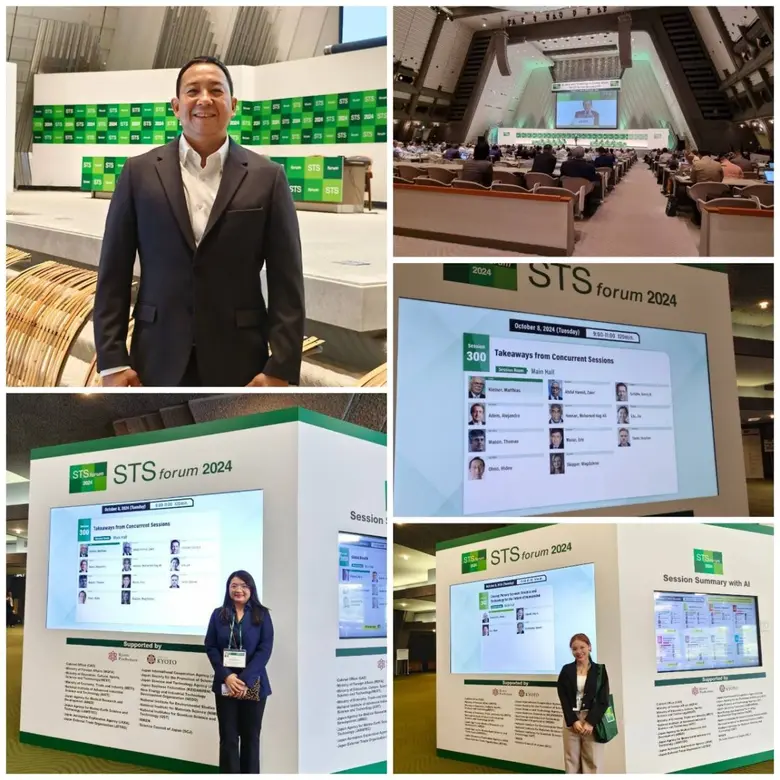 (8 ตุลาคม 2567) ดร. พงศธร ประภักรางกูล นักบริหารพิเศษ และรักษาการผู้อำนวยการศูนย์ความหลากหลายทางชีวภาพ (ศคช.) สถาบันวิจัยวิทยาศาสตร์และเทคโนโลยีแห่งประเทศไทย (วว.) พร้อมด้วย ดร. ณศิสรณ์ สุขศรีเดชาศิลป์ นักวิจัย ศคช. และ ดร. ศิริพร บุตรสีโคตร นักวิจัย ศูนย์เชี่ยวชาญนวัตกรรมอาหารสุขภาพ (ศนอ.) ได้เข้าร่วมพิธีปิดการประชุม STS forum 2024 ณ Kyoto International Conference Centre (ICC Kyoto) เมืองเกียวโต ประเทศญี่ปุ่น โดยเข้าร่วมรับฟังการบรรยาย Session: Takeaways form Concurrent Sessions โดยมี Professor Hiroshi Komiyama, Chairman of STS forum ได้ร่วมกล่าวปาฐกถาพิเศษ ภายใต้หัวข้อ Science and Technology for the Future of Humankind การเข้าร่วมประชุม STS Forum ณ ประเทศญี่ปุ่น ในครั้งนี้ ถือเป็นอีกก้าวสำคัญ ที่คณะผู้บริหารและนักวิจัย ต่างได้แสดงศักยภาพในด้านงานวิจัยของ วว. ในเวทีในระดับนานาชาติ โดย STS Forum นับเป็นองค์กรไม่แสวงหาผลกำไรด้านวิทยาศาสตร์และเทคโนโลยีของญี่ปุ่น ที่ดำเนินงานเพื่อสร้างความตระหนักเกี่ยวกับความต้องการและผลกระทบจากการพัฒนาวิทยาศาสตร์และเทคโนโลยีที่มีต่อสังคม โดยได้รับงบประมาณสนับสนุนจากรัฐบาลญี่ปุ่น และจัดประชุมประจำปีในเดือนตุลาคม ณ ประเทศญี่ปุ่น ต่อเนื่องมากว่า 20 ปี เพื่อผนึกกำลังให้เรื่องที่กำลังดำเนินการมีพลังความร่วมมือจากเครือข่ายนานาประเทศ ซึ่งจะส่งผลให้การขับเคลื่อนนโยบายเป็นรูปธรรมมากยิ่งขึ้น