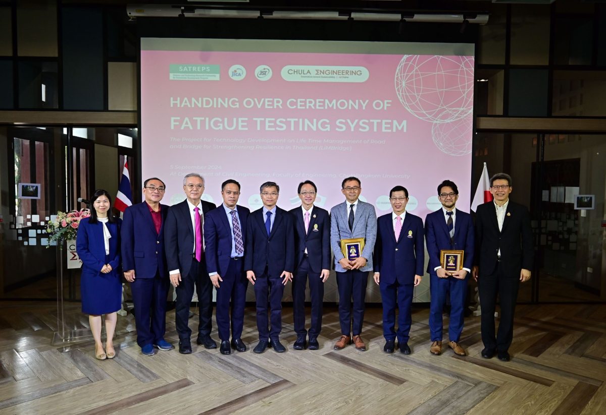 งานแถลงข่าวจัดขึ้นเมื่อวันที่ 5 กันยายน 2567 ณ ห้อง Auditorium TRUELAB อาคาร 3 คณะวิศวกรรมศาสตร์ จุฬาฯ โดยมี รศ.ดร.วิทยา วัณณสุโภประสิทธิ์ คณบดีคณะวิศวกรรมศาสตร์ จุฬาฯ เป็นประธานกล่าวเปิดงาน จากนั้นนายพลเทพ เลิศวรวนิช ผู้อำนวยการสำนักวิจัยและพัฒนางานทาง กรมทางหลวง Mr. Ryoichi Kawabe, Senior Representative, JICA Thailand office กล่าวถึงความร่วมมือในโครงการนี้ ภายในงานมีพิธีรับมอบระบบทดสอบความล้า มูลค่า 19 ล้าน สำหรับวัดความทนทานในการรับแรงกระแทกของวัสดุโครงสร้างอาคารและสิ่งก่อสร้าง โดยมี Prof. Dr. Sato Yasuhiko, roject Investigator, Waseda University ศ.ดร.เกษม ชูจารุกุล หัวหน้าภาควิศวกรรมโยธา คณะวิศวกรรมศาสตร์ จุฬาฯ รศ.ดร.พูลศักดิ์ เพียรสุสม ผู้อำนวยการโครงการ ภาควิศวกรรมโยธา คณะวิศวกรรมศาสตร์ จุฬาฯ ร่วมในพิธีรับมอบครั้งนี้ และมีการทดลองการใช้งานระบบทดสอบความล้าด้วย