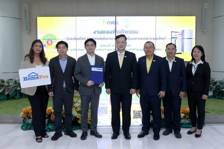 นายวรวุฒิ ลิมป์แสงทอง ผู้จัดการทั่วไป สายจัดซื้อ Air Conditioner & Refrigerator พร้อมด้วย นายชาญชัย ชัยถาวรกิจ ผู้จัดการเขตบริหารกลุ่มสินค้า บริษัท โฮม โปรดักส์ เซ็นเตอร์ จำกัด (มหาชน) ร่วมลงนามกับ นายธวัชชัย สำราญวานิช ผู้ช่วยผู้ว่าการแผนงานโรงไฟฟ้าการไฟฟ้าฝ่ายผลิตแห่งประเทศไทย (กฟผ.) จัดกิจกรรม "ร่วมรักษ์โลก ร่วมรักษ์พลังงาน ร่วมใช้ตู้เย็นฉลากเบอร์ 5 แบบใหม่" ที่ใช้สารทำความเย็นธรรมชาติ เป็นมิตรกับสิ่งแวดล้อม มอบสิทธิ์ประโยชน์ส่วนลดพิเศษให้กับลูกค้าสูงสุดกว่า 3,500 บาท รวมจำนวน 5,555 สิทธิ์ตลอดรายการ ตั้งแต่วันที่ 1 พ.ค. - 30 ก.ย. 67 นี้ ณ อาคาร 50 ปี กฟผ. การไฟฟ้าฝ่ายผลิตแห่งประเทศไทย