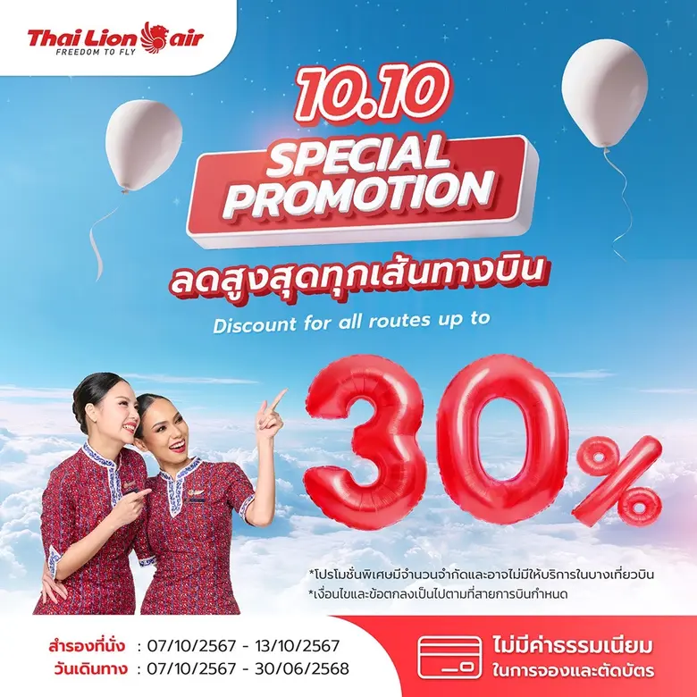 สายการบินไทย ไลอ้อน แอร์ จัดโปรโมชั่นพิเศษ 10.10 SPECIAL PROMOTION มอบส่วนลดสูงสุด 30 %