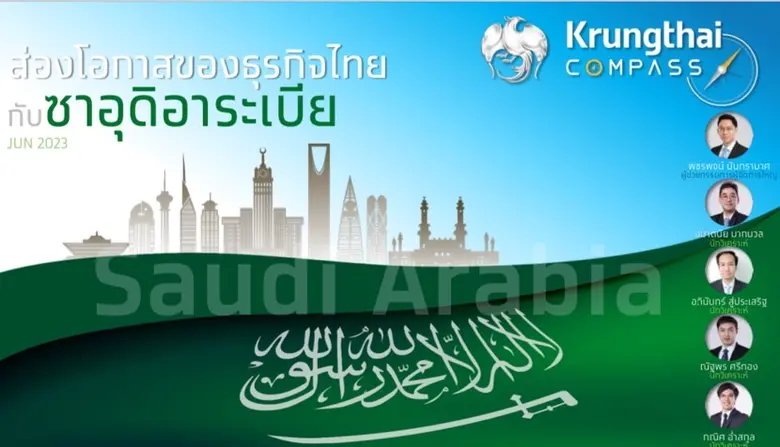 Krungthai COMPASS มองซาอุดิอาระเบียเป็นตลาดที่มีศักยภาพเติบโตสูง อานิสงส์จากการฟื้นฟูความสัมพันธ์ทางการทูตและแรงหนุนจากนโยบายปฏิรูป "Saudi Vision 2030" คาดการส่งออกไทยไปซาอุฯสูงถึง 1.2 แสนล้านบาท เติบโต 2 เท่า จำนวนนักท่องเที่ยวซาอุฯแตะ 2 แสนคนในอีก 7 ปีข้างหน้า แนะผู้ประกอบการไทยใช้ประโยชน์จากโอกาสทางการค้า ภาคบริการ และการลงทุน ขยายตลาดหรือหาช่องทางลงทุน สร้างการเติบโตในอนาคต