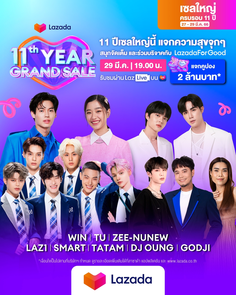 ลาซาด้า ฉลองครบรอบ 11 ปี แห่งความสำเร็จในการเป็นผู้บุกเบิกและผู้นำแพลตฟอร์มอีคอมเมิร์ซในเอเชียตะวันออกเฉียงใต้ เดินหน้าสานต่อพันธกิจในการตอบแทนสังคมและยกระดับชุมชน โดยร่วมมือกับองค์กรการกุศล 11 แห่ง เปิดโอกาสให้นักช้อปชาวไทยร่วมบริจาคออนไลน์ผ่านโครงการ "LazadaForGood ให้ทุกใจได้ทำดี" ในแคมเปญ "เซลใหญ่ครบรอบ 11 ปี" เพื่อสนับสนุนองค์กรไม่แสวงหาผลกำไร พร้อมชวนแบรนด์แอมบาสเดอร์ของลาซาด้าและเหล่าเซเลบริตี้มาร่วมกิจกรรมไลฟ์สตรีมสุดพิเศษ "Lazada 11th Year Grand Sale - Charity Live" เพื่อเชิญชวนแฟน ๆ มารับชมความสนุก พร้อมสร้างการมีส่วนร่วมในการทำความดี ในวันที่ 29 มีนาคมนี้ เวลา 19.00 น. เป็นต้นไป ผ่าน LazLive บนแอปฯ ลาซาด้า และ TikTok LazadaTH