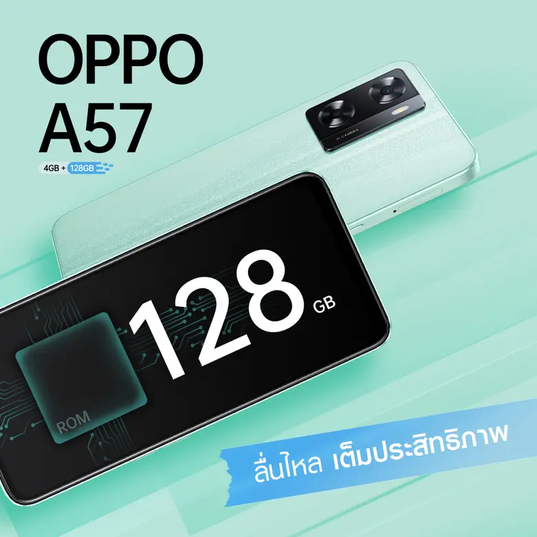 โดย OPPO A57 รุ่น RAM 4GB + ROM 128 GB มาพร้อมหน่วยความจำแบบจัดเต็ม พร้อม RAM Expansion ที่เพิ่มหน่วยความจำได้อีก 4GB และพื้นที่จัดเก็บเพิ่มเติมถึง 1TB เสริมด้วยแบตเตอรี่ขนาดใหญ่ 5,000mAh พร้อมชาร์จไว 33W SUPERVOOC ใช้งานได้ยาวนานตลอดวันไร้สะดุด และเต็มอิ่มทุกความบันเทิง ด้วยพลังเสียงที่สมจริงจากลำโพงสเตอริโอรอบทิศทาง