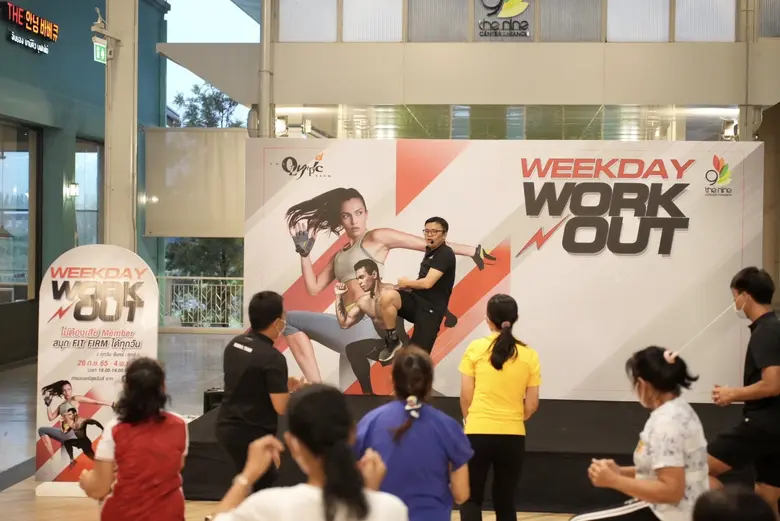 เดอะไนน์ เซ็นเตอร์ ติวานนท์ ศูนย์การค้าในเครือเอ็ม บี เค เดินหน้าสร้างความสุข ความสนุก ผ่านกิจกรรมสร้างสรรค์ให้ชาวปทุมและชุมชนเพื่อนบ้านใกล้เคียงอย่างต่อเนื่อง โดยเนรมิตพื้นที่กิจกรรมเพื่อคนที่รักการออกกำลังกาย กับ กิจกรรม WEEKDAY WORKOUT ชวนทุกคนมีสุขภาพดี ฟิตเฟิร์ม กับการออกกำลังกายอย่างถูกวิธี แบบไม่ต้องเสียค่าสมัครเมมเบอร์ โดยมีเทรนเนอร์มากประสบการณ์ จาก ดิ โอลิมปิค คลับ ที่จะพาคุณเบิร์นให้สุด สนุกไปกับ คลาสสุดมันส์ ให้เล่นกันแบบฟรี ๆ ทุกวันจันทร์-วันศุกร์