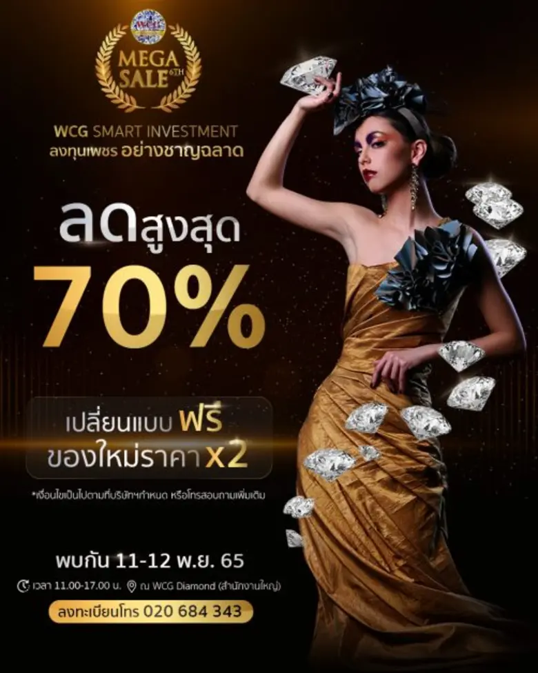 เตรียมจัดมหกรรม WCG DIAMOND MEGASALE พบกับเครื่องประดับเพชรแท้ทุกชนิดลดราคาสูงสุด 70%