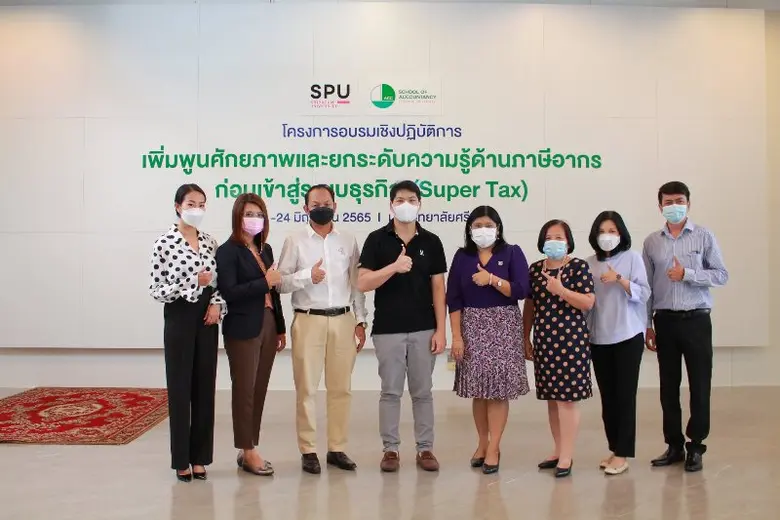 คณะบัญชี มหาวิทยาลัยศรีปทุม จัดกิจกรรมเรียนกับตัวจริง ประสบการณ์จริง กับโครงการฝึกอบรมเชิงปฎิบัติ เพิ่มพูนศักยภาพและยกระดับความรู้ด้านภาษีอากรก่อนเข้าสู่ระบบธุรกิจ "Super Tax #2" หัวข้อ ภาษีเงินได้นิติบุคคล ภาษีมูลค่าเพิ่ม ภาษีธุรกิจเฉพาะ อากรแสตมป์ และภาษีป้าย โดยมีวิทยากรผู้ทรงคุณวุฒิ คุณกฤษ เกตุศร ผู้สอบบัญชีรับอนุญาต (CPA) และเจ้าของเพจผู้ประกอบการรุ่นใหม่ใส่ใจบัญชีและภาษี ให้เกียรติถ่ายทอดความรู้และแชร์ประสบการณ์ตรงให้กับนักศึกษาคณะบัญชี SPU และภายหลังเสร็จสิ้นการบรรยาย ดร.พรรณทิพย์ อย่างกลั่น ผู้ช่วยคณบดีฝ่ายวิชาการ คณะบัญชี ได้มอบของที่ระลึกแก่วิทยาการเพื่อเป็นการขอบคุณ ณ อาคารอเนกประสงค์ มหาวิทยาลัยศรีปทุม กทม.(บางเขน) เมื่อวันที่ 24 มิถุนายน 2565