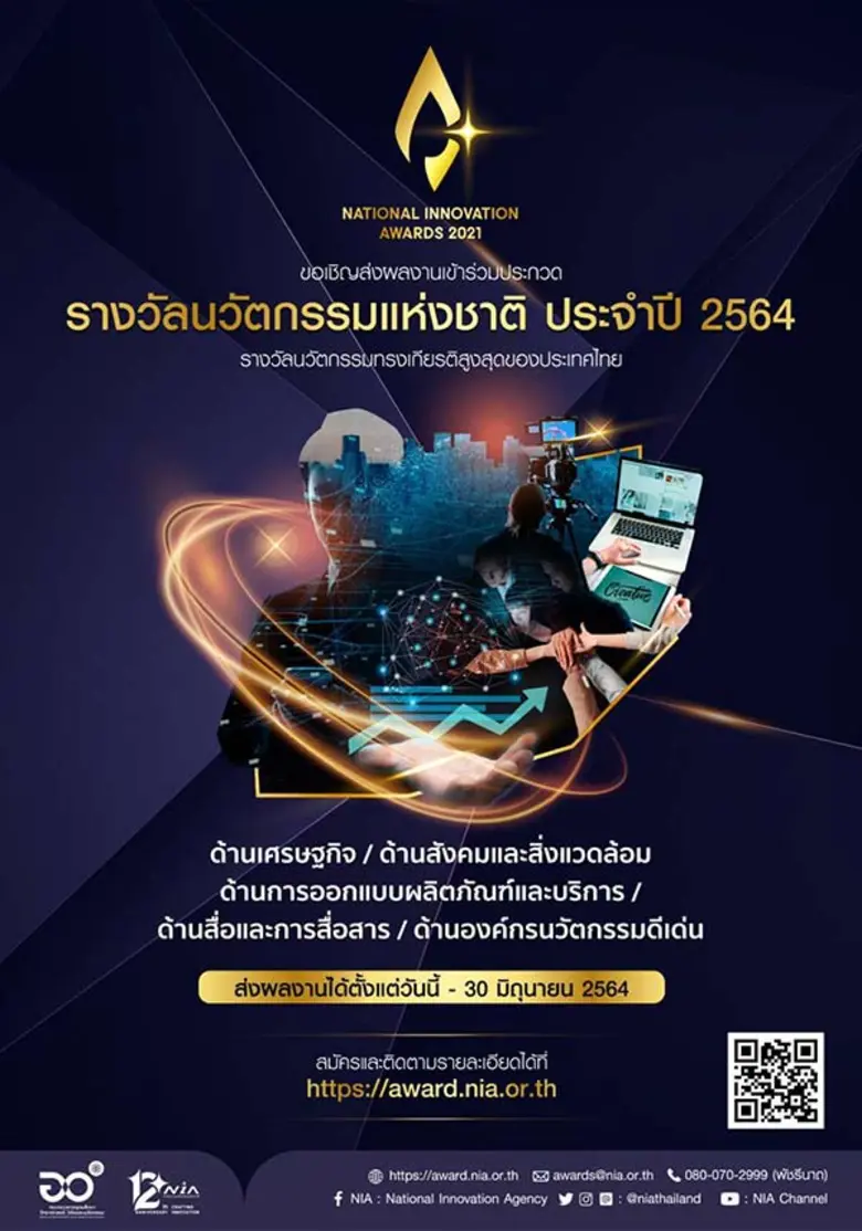 สำนักงานนวัตกรรมแห่งชาติ (องค์การมหาชน) หรือ NIA กระทรวงการอุดมศึกษา วิทยาศาสตร์ วิจัย และนวัตกรรม (อว.) จัดกิจกรรม "การประกวดรางวัลนวัตกรรมแห่งชาติ ประจำปี 2564" ภายใต้คอนเซ็ปต์ "Timeless Honor รางวัลแห่งเกียรติยศสูงสุดแห่งนวัตกรรม ล้ำค่าเหนือกาลเวลา" โดยมุ่งเชิดชูเกียรติคนไทยที่สร้างสรรค์ผลงานนวัตกรรมที่มีความโดดเด่น และก่อให้เกิดประโยชน์ต่อองค์กรหรือประเทศในหลากหลายมิติ นอกจากนี้ ยังเป็นการสร้างให้เกิดความภาคภูมิใจในศักยภาพของคนไทยผ่านการเผยแพร่ต้นแบบการพัฒนานวัตกรรมด้านต่างๆ สู่สาธารณชนในวงกว้าง รวมถึงกระตุ้นให้เกิดความตื่นตัวด้านนวัตกรรมในทุกภาคส่วนของสังคม เพื่อผลักดันประเทศไทยสู่การเป็น "ประเทศแห่งนวัตกรรม"