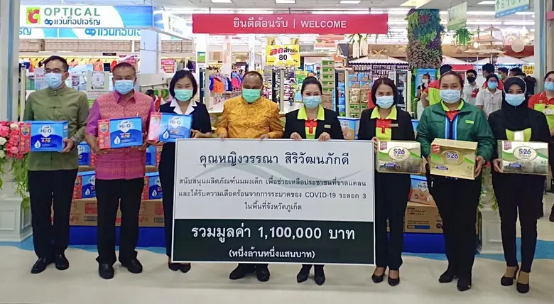 คุณหญิงวรรณา สิริวัฒนภักดี สนับสนุนผลิตภัณฑ์นมผงสำหรับเด็กให้แก่ประชาชนที่ขาดแคลน โดยเฉพาะคุณแม่ที่มีลูกอ่อนที่ได้รับผลกระทบจากสถานการณ์การแพร่ระบาดของโรคติดเชื้อไวรัสโคโรน่า (COVID-19) ระลอกที่ 3 จำนวน 500 กล่อง รวมเป็นมูลค่า 1.1 ล้านบาท ให้แก่หน่วยงานสำนักงานพัฒนาสังคมและความมั่นคงของมนุษย์ จังหวัดภูเก็ต และกระจายไปยังประชาชนในพื้นที่จังหวัดภูเก็ต เพื่อแบ่งปันความสุข รวมถึงบรรเทาความเดือดร้อน และหวังเป็นส่วนหนึ่งช่วยคนไทยผ่านพ้นวิกฤตนี้ไปด้วยกัน โดยได้รับเกียรติจาก นายณรงค์ วุ่นซิ้ว ผู้ว่าราชการจังหวัดภูเก็ต เป็นผู้รับมอบ ณ บิ๊กซี ซูเปอร์เซ็นเตอร์ สาขาภูเก็ตในเมือง เมื่อเร็วๆนี้