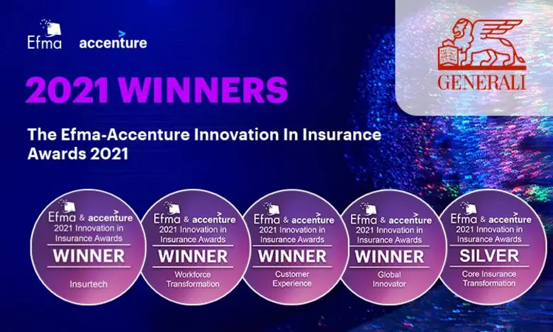 เจนเนอราลี่ กรุ๊ป คว้า 5 รางวัลระดับโลกจาก Efma - Accenture Innovation in Insurance Awards 2021 ต่อเนื่องเป็นปีที่ 2 ตอกย้ำองค์กรชั้นนำด้านนวัตกรรมที่โดดเด่นที่สุดในอุตสาหกรรมการเงินและการธนาคารทั่วโลก มุ่งพัฒนาองค์กรสู่นวัตกรรมและสังคมที่ดีให้แก่ลูกค้าและสังคมสู่การเติบโตในอุตสาหกรรมประกันภัยอย่างยั่งยืน