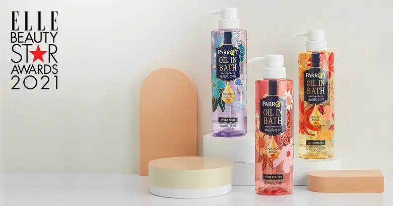 "แพรอท ออยล์ อิน บาธ" (PARROT Oil in Bath) ที่สุดของผลิตภัณฑ์ครีมอาบน้ำนวัตกรรมใหม่ ภายใต้การบริหารของ บริษัท เบอร์ลี่ ยุคเกอร์ จำกัด (มหาชน) หรือบีเจซี คว้ารางวัล "ELLE Beauty Star Awards 2021" สาขาสุดยอดผลิตภัณฑ์ความงามประเภทครีมอาบน้ำดีเด่น 'Best Star Ultra Moisturizing Body Wash' จากนิตยสารแอล ประเทศไทย การันตีคุณภาพด้วยส่วนผสมหลักที่ยืนหนึ่งด้านการให้ความชุ่มชื่นอย่างออร์แกนิก อาร์แกน ออยล์ (Organic Argan Oil) สุดยอดน้ำมันบำรุงผิวจากโมร็อกโก ที่สามารถซึมซาบเข้าสู่ผิวอย่างล้ำลึกเป็นพิเศษกว่าที่เคย ทำให้ผิวกายของคุณเนียนนุ่มขึ้น 2 เท่าแบบไม่ง้อโลชั่น ตอบโจทย์ไลฟ์สไตล์คนเมืองที่ต้องเผชิญกับมลภาวะต่าง ๆ ซึ่งอาจก่อให้เกิดผิวแห้งเสียสะสมให้คุณเพลิดเพลินกับประสบการณ์อาบผิวนุ่มระดับพรีเมี่ยม หอมหรูสไตล์ฝรั่งเศส ที่รังสรรค์โดยเพอร์ฟูมมาสเตอร์ระดับโลก นวัตกรรมใหม่ล่าสุดจาก แพรอท พร้อมกู้ผิวแห้งเสียให้กลับมาเรียบเนียนแลดูมีสุขภาพดีอีกครั้งด้วย "แพรอท ออยล์ อิน บาธ" ครีมอาบน้ำผสมออยล์ที่มาในรูปแบบใส มีให้คุณเลือกซื้อ 3 สูตร ได้แก่ สูตรไวท์ เพอร์เฟค (White Perfect) ผสานวิตามิน B3 ที่มีคุณสมบัติช่วยกระตุ้นการสร้างคอลลาเจนให้ผิวมีความยืดหยุ่น ป้องกันการเกิดริ้วรอย จึงทำให้ฝ้า กระ ดูจางลง ผิวอิ่มน้ำแลดูกระจ่างใสอย่างเป็นธรรมชาติ, สูตรซอฟท์ โรแมนซ์ (Soft Romance) สำหรับผิวเสียแห้งกร้าน หรือถูกทำร้ายจากมลภาวะ ที่ต้องการคืนความชุ่มชื้นให้ผิวขั้นสุด ด้วยส่วนผสมของเชียบัตเตอร์ สารบำรุงผิวที่เป็นเสมือนมอยเจอไรเซอร์อเนกประสงค์ และสูตรไฮโดร เฟรช (Hydro Fresh) ด้วยการทำงานร่วมกันของส่วนผสมที่แตกต่างระหว่างน้ำแร่ธรรมชาติ กับน้ำมันออร์แกนิก อาร์แกน ออยล์ ที่ผสานกันได้อย่างลงตัว พร้อมคืนสมดุลให้ผิวนุ่มชุ่มชื่นฉ่ำวาว ขนาดบรรจุ 400 มล. ราคา 129 บาท