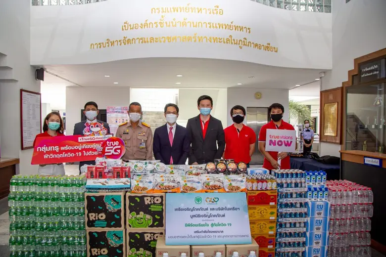 สถานการณ์แพร่ระบาดโควิด-19 ในไทยที่ยังคงลุกลามและรุนแรงมากขึ้น ส่งผลให้ทุกภาคส่วน ต้องให้ความช่วยเหลือต่อเนื่องซึ่งรวมถึงเครือเจริญโภคภัณฑ์และกลุ่มทรู นำโดย นายประสิทธิ์ บุญดวงประเสริฐ ประธานคณะผู้บริหาร บมจ. เจริญโภคภัณฑ์อาหาร (กลาง) นายสุเมธ เหล่าโมราพร ประธานคณะผู้บริหาร กลุ่มธุรกิจการค้าระหว่างประเทศ (ที่ 3 จากขวา) ดร.ธีรเดช ดำรงค์พลาสิทธิ์ กรรมการผู้จัดการใหญ่ (ร่วม) บมจ. ทรู คอร์ปอเรชั่น (ที่ 2 จากซ้าย) นายวิเชียร จึงวิโรจน์ กรรมการบริหารและรองกรรมการผู้จัดการอาวุโส บมจ. ซีพี ออลล์ (ที่ 2 จากขวา) ที่ได้เร่งดำเนินการส่งมอบอาหาร น้ำดื่ม และความสะดวกด้านการสื่อสาร แก่โรงพยาบาลสนามในสังกัดกรมแพทย์ทหารเรือ และโรงพยาบาลสมเด็จพระปิ่นเกล้า โดยพลเรือโท วิชัย มนัสศิริวิทยา เจ้ากรมแพทย์ทหารเรือ (ที่ 4 จากซ้าย) ภายใต้โครงการ "ซีพีร้อยเรียงใจ สู้ภัยโควิด-19"
