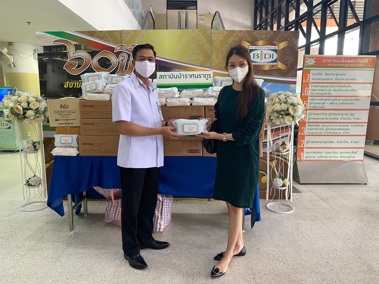 มอบผลิตภัณฑ์ทิชชู่เปียกเบเบ้ซุป รุ่นเนเจอร์ ซีโร่ จำนวน 150 ห่อ มูลค่า 21,000 บาท และ รุ่นเนเจอร์ เซนซิทีฟ จำนวน 150 ห่อ มูลค่า 24,000 บาท รวมมูลค่าทั้งสิ้น 45,000 บาท โดยมี นายรังสรรค์ ถามูลแสน รองผู้อำนวยการฝ่ายอำนวยการ สถาบันบำราศนราดูร เป็นตัวแทนผู้รับมอบ