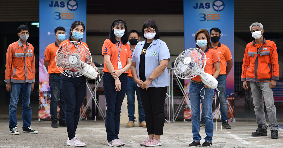 คุณธิติมา กิระวานิช หัวหน้าหน่วยงาน ฝ่ายพัฒนาธุรกิจเพื่อสังคม กลุ่มบริษัท จัสมิน อินเตอร์เนชั่นแนล จำกัด (มหาชน) (JAS) และบริษัท ทริปเปิลที บรอดแบนด์ จำกัด (มหาชน) หรือ 3BB จัดทำ "โครงการ 9 โรงพยาบาลด้วยห่วงใย ก้าวด้วยใจเกื้อกูล" ด้วยการมอบพัดลมแบบแขวนผนัง พร้อมติดตั้งให้กับโรงพยาบาลส่งเสริมสุขภาพตำบล (รพ.สต.)กลุ่มบริษัทจัสมินฯ จัดซื้อ จัดหาอุปกรณ์ทางการแพทย์ที่ขาดแคลน อุปกรณ์ป้องกันที่ใช้ในยามจำเป็น รวมถึงสิ่งอำนวยความสะดวกสำหรับประชาชนที่เข้ารับบริการ ด้วยการติดตั้งพัดลมแบบแขวนผนังให้กับโรงพยาบาลส่งเสริมสุขภาพตำบล หรือ รพ.สต. จำนวน 5 จังหวัด ประกอบไปด้วย จังหวัดศรีสะเกษ ฉะเชิงเทรา นครสวรรค์ พระนครศรีอยุธยา และมุกดาหาร รวมทั้งสิ้น 45 โรงพยาบาล 405 เครื่อง เพื่ออำนวยความสะดวกสบายให้กับประชาชนที่เข้ารับบริการจากโรงพยาบาลส่งเสริมสุขภาพตำบล