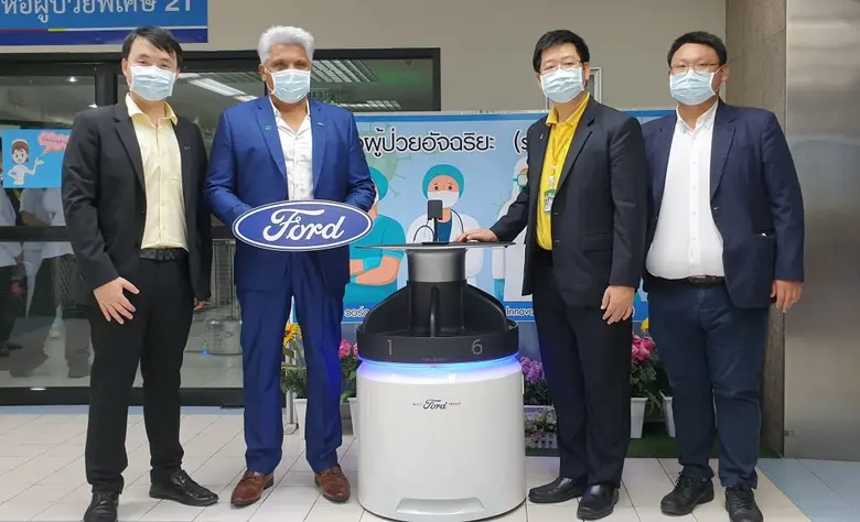 ฟอร์ด ประเทศไทย สนับสนุนนักศึกษาจากสถาบันการจัดการปัญญาภิวัฒน์ (พีไอเอ็ม) ในภารกิจ “วอร์ด Cowit 2020” (Co-Creation Ward Innovation Technology 2020) “หุ่นยนต์และอุปกรณ์” ประกอบไปด้วย หุ่นยนต์ “น้อง C และ น้อง W” ตู้ฆ่าเชื้อด้วยแสง UVC ประตูอัตโนมัติหน้าห้องผู้ป่วย เครื่องติดตามการให้สารละลายแก่ผู้ป่วย พร้อมกันนี้ทีมวิศวกรของโรงงานฟอร์ด มอเตอร์ คัมปะนี (ประเทศไทย) ยังได้นำพื้นฐานหุ่นยนต์ที่นักศึกษาจากสถาบันการจัดการปัญญาภิวัฒน์ (พีไอเอ็ม) ประดิษฐ์ขึ้นมาพัฒนาเป็นหุ่นยนต์เพื่อส่งมอบให้โรงพยาบาลเจริญกรุงประชารักษ์ ไว้ใช้ในการปฏิบัติภารกิจเพิ่มอีก 1 ตัว โดยมีนายแพทย์ เกรียงไกร ตั้งจิตรมณีศักดา ผู้อำนวยการ โรงพยาบาลเจริญกรุงประชารักษ์ เป็นผู้รับมอบ