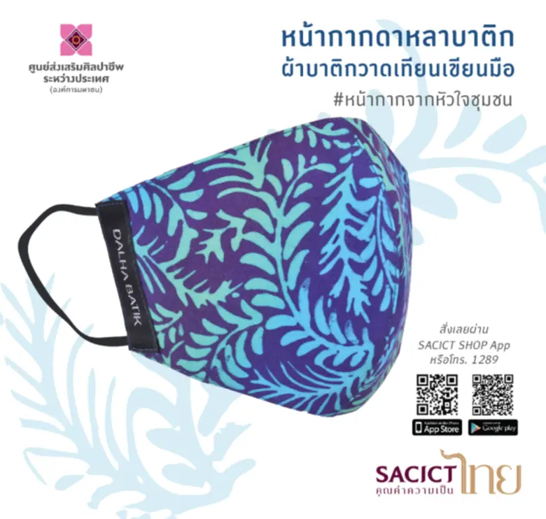 ธนินทร์ธร รักษาวงศ์ ครูช่างศิลปหัตถกรรมปี 2556 กล่าวว่า “ภาคใต้เองก็ได้รับผลกระทบจากโควิดรุนแรง กระบี่ซึ่งเป็นเมืองท่องเที่ยวแต่หลายเดือนที่ผ่านมาไม่มีนักท่องเที่ยวเลย เศรษฐกิจท้องถิ่นหยุดชะงักหมด ชาวบ้านลำบากไม่มีงานทำไม่มีรายได้ แต่ภายใต้ความเดือดร้อนนี้เองที่ทั้งตัวครูเองและชาวบ้านได้เห็นความหวังเมื่อ SACICT ได้นำแนวทางศิลปาชีพและหัตถกรรมท้องถิ่นมาให้เราได้ทำงาน เปลี่ยนจากการทำผ้าบาติกขายนักท่องเที่ยว มาเป็นการทำหน้ากากทางเลือก โดยใช้ภูมิปัญญาการทำผ้าบาติกลวดลายและสีสันจากธรรมชาติมาออกแบบ ซึ่งกลุ่มเป้าหมายของเรากลายเป็นคนไทยจากทุกภูมิภาคทั่วประเทศที่ได้เข้ามาช่วยซื้อช่วยสนับสนุน ครูน้อมสำนึกในพระมหากรุณาธิคุณของสมเด็จพระบรมราชชนนีพันปีหลวง ขณะเดียวกันก็ซาบซึ้งในน้ำใจคนไทยทุกคนค่ะ