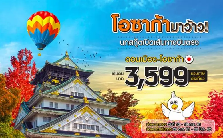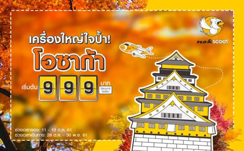 “นกแอร์” จับมือ “นกสกู๊ต” เอาใจลูกค้า ขยายเส้นทางให้บริการสำรองบัตรโดยสารแบบอินเตอร์ไลน์ สู่เมืองโอซาก้า( สนามบินคันไซ) ประเทศญี่ปุ่น คลิกเว็บเดียวจบ ได้ครบทั้งสองสายการบิน
