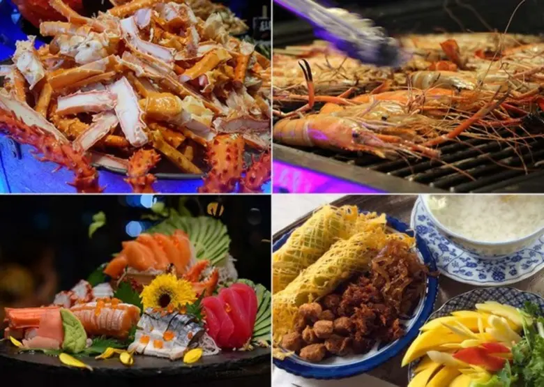 บุฟเฟ่ต์นานาชาติมื้อกลางวัน รวมน้ำอัดลมไม่อั้น ซื้อ 10 ใบ เหลือเพียงใบละ 409 บาทเท่านั้น หรือไม่ว่าจะเป็นโปรโมชั่นยอดฮิตอย่าง บุฟเฟ่ต์นานาชาติ ซีฟู้ดมื้อค่ำกุ้งเผาและซีฟู้ด เหลือเพียงใบละ 818 บาท เท่านั้น เมื่อซื้อ 10 ใบแถม 1 ใบ