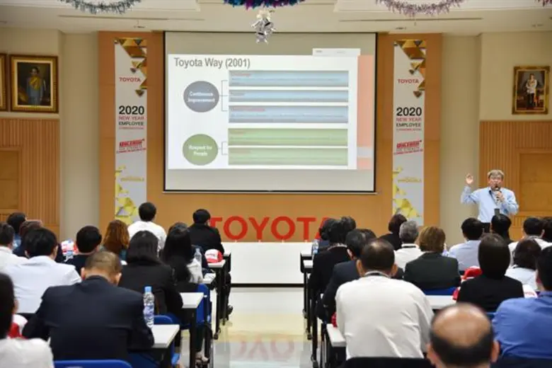 ดร.รัฐศาสตร์ กรสูต รองผู้อำนวยการใหญ่และผู้อำนวยการหลักสูตรฯ พร้อม ดร.อรฉัตร เลียงพิบูลย์ ผู้อำนวยการฝ่ายส่งเสริมการพัฒนากำลังคนดิจิทัล นำทีม คณะผู้บริหารผู้เข้าอบรมหลักสูตร ผู้นำการส่งเสริมเศรษฐกิจดิจิทัล (Digital CEO) รุ่นที่ 3 เข้าศึกษาดูงานและเยี่ยมชมโรงงานผลิตรถยนต์โตโยต้าบ้านโพธิ์ จ.ฉะเชิงเทรา ซึ่งเป็นโรงงานผลิตรถยนต์ที่ใหญ่และล้ำสมัยที่สุดแห่งหนึ่งของโตโยต้าในประเทศไทย โดยมีนายเจริญชัย ยิ่งจรูญกิจ ผู้ช่วยกรรมการผู้จัดการใหญ่ บริษัท โตโยต้า มอเตอร์ ประเทศไทย จำกัด พร้อมคณะผู้บริหารโตโยต้าให้การต้อนรับ โดยการเยี่ยมชมโรงงานของโตโยต้าครั้งนี้ มีวัตถุประสงค์เพื่อศึกษาเรียนรู้ในการนำเทคโนโลยีดิจิทัล มาประยุกต์ใช้ในการดำเนินงานขององค์กรฯ