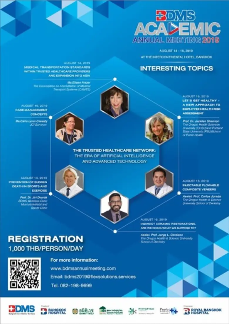 ขอเชิญชวนแพทย์ ทันตแพทย์ พยาบาล เภสัชกร เทคนิคการแพทย์ บุคลากรทางการแพทย์การสาธารณสุข และผู้สนใจ เข้าร่วม "งานประชุมวิชาการบริษัท กรุงเทพดุสิตเวชการ จำกัด(มหาชน) ประจำปีพ.ศ. 2562 BDMS ACADEMIC ANNUAL MEETING 2019" ภายใต้แนวคิด "The Trusted Healthcare Network : The Era of Art Artificial Intelligence and Advanced Technology"