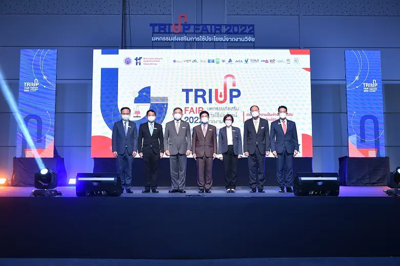 พลอากาศเอก ดร.ประจิน จั่นตอง (ที่สามจากซ้าย) ประธานคณะกรรมาธิการ การอุดมศึกษา วิทยาศาสตร์ วิจัยและนวัตกรรม วุฒิสภา และอดีตรองนายกรัฐมนตรี ศ.ดร.นพ. สิริฤกษ์ ทรงศิวิไล (ที่สองจากซ้าย) ปลัดกระทรวงการอุดมศึกษา วิทยาศาสตร์ วิจัยและนวัตกรรม นายสุนทร ชัยยินดีภูมิ (ที่สองจากขวา) รองเลขาธิการนายกรัฐมนตรีฝ่ายการเมือง ศ.กิตติคุณ นพ.สุทธิพร จิตต์มิตรภาพ (กลาง) ประธานคณะกรรมการส่งเสริมวิทยาศาสตร์ วิจัยและนวัตกรรม (กสว.) รศ.ดร.ปัทมาวดี โพชนุกูล (ที่สามจากขวา) ผู้อำนวยการ สำนักงานคณะกรรมการส่งเสริมวิทยาศาสตร์