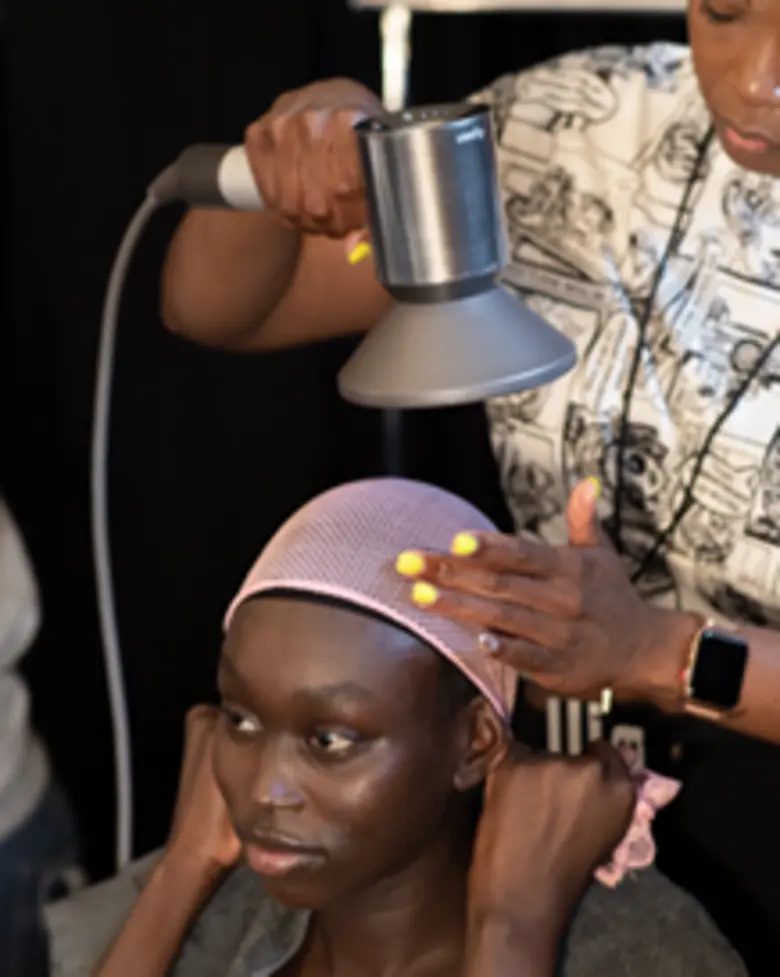 ลุคนี้จะใช้ไดร์เป่าผม Dyson Supersonic hair dryer ในการสไตล์ เพื่อป้องกันไม่ให้ผมของนางแบบโดนความร้อนที่สูงจนเกินไปจนอาจทำให้ผมเสียสุขภาพได้ หลังจากนั้นก็จะเป็นการถักเปียเป็นรูปแบบต่าง ดูเก๋และเท่มากเลยทีเดียว