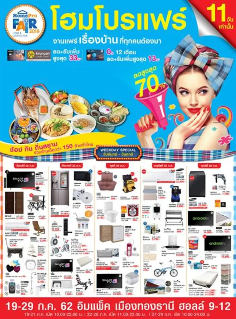 โฮมโปรแฟร์" ครั้งที่ 4 ภายใต้คอนเซปต์ "ช้อป ชิม ชิลล์" ภายในงานจะได้พบกับ โซนสินค้าเรื่องบ้านทุกแผนกลดสูงสุดกว่า 70% และไฮไลท์สินค้าที่เป็นมิตรต่อ