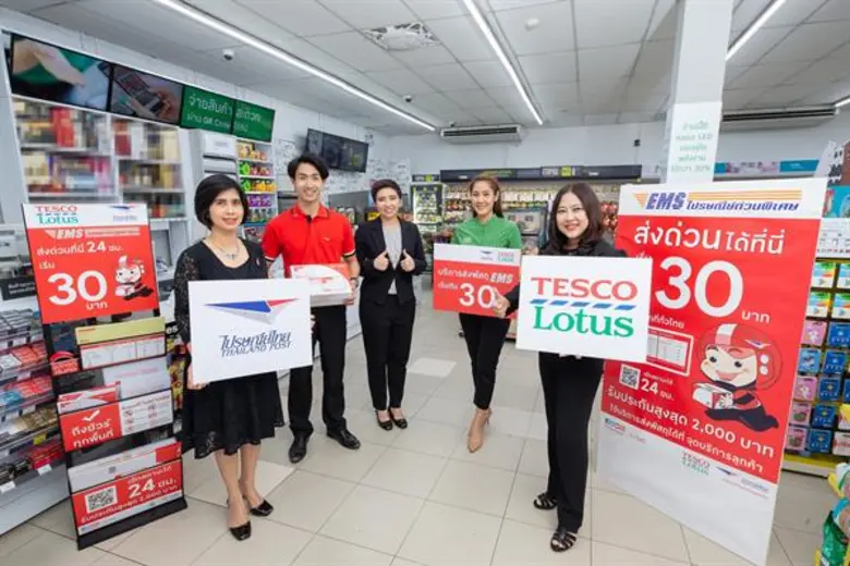 นางสุชาดา วานิชผล ผู้จัดการฝ่ายบริหารประสบการณ์ลูกค้าไปรษณีย์ด่วนพิเศษและโลจิสติกส์ บริษัท ไปรษณีย์ไทย จำกัด (ที่ 2 จากซ้าย) และ นางสาววิณัฏฐา นิภาวงษ์ ผู้จัดการอาวุโส ฝ่ายธุรกิจเสริม เทสโก้ โลตัส (ที่ 3 จากซ้าย) ร่วมเปิดตัว "จุดบริการส่งด่วน EMS ในประเทศ 24 ชั่วโมง" จุดบริการฝากส่งด้วยบริการไปรษณีย์ด่วนพิเศษ ในประเทศ ตลอด 24 ชั่วโมง ในราคาเริ่มต้นที่ 30 บาท ณ เทสโก้ โลตัส เอ็กซ์เพรส เพื่ออำนวยความสะดวกแก่ลูกค้า ประชาชน และผู้ค้าออนไลน์ให้สามารถส่งสินค้าได้ตามเวลาที่ต้องการ นำร่อง 500 สาขาในพื้นที่กรุงเทพฯ และปริมณฑล และเตรียมขยายไปยังพื้นที่จังหวัดอื่นๆ อีกกว่า 700 สาขาทั่วประเทศภายในปี 2562 นอกจากนี้ บริการดังกล่าว ยังเปิดให้บริการ ณ สาขาขนาดใหญ่ของเทสโก้ โลตัส