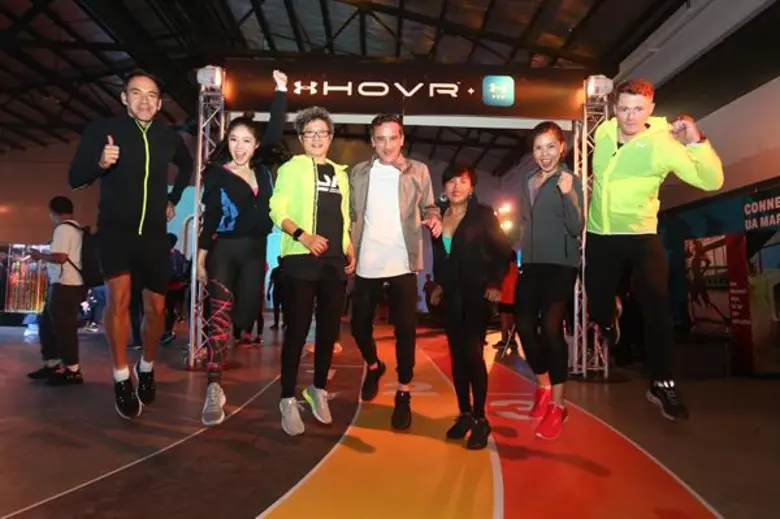 มร.ไมเคิล บิงเกอร์ (กลาง) ประธานบริหาร บริษัท ทริปเปิ้ล จำกัด พร้อมด้วย คุณปริศนา ศิริสมถะ (3 จากซ้าย) ผู้จัดการทั่วไป คุณจริญญา เขียวหวาน (3 จากขวา) ผู้จัดการฝ่ายการตลาด บริษัท ยูเอ สปอร์ต (ประเทศไทย) ร่วมเปิดตัวรองเท้า 5 รุ่นใหม่ในซีรี่ย์ HOVR โดยมีโค้ชไซมอน อกัสตัน (ซ้าย) คุณดาร์ลิ่ง อารดา อารยวุฒิ (2 จากซ้าย) นักไตรกีฬาชื่อดัง คุณอุ้ง ปุณยนุช ปรัญชานิพนธ์ (2 จากขวา) ไอดอลสาวนักวิ่ง และ คุณมาร์ค แอ็บบอท (ขวา) โค้ชฟิตเนสชื่อดังของเมืองไทย ร่วมงานด้วย