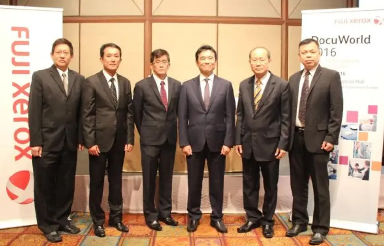 ในภาพ (จากซ้ายไปขวา): นายฮิเดยูกิ โมริทาดะ Director, Business Planning & Marketing, นายพิชัย ธัญญวัชรกุล Director, Area Sales and GCS, นายฮิโรอากิ อาเบะ ประธานบริษัทฯ, นายกิติกร นงค์สวัสดิ์ ผู้อำนวยการใหญ่ฝ่ายปฏิบัติการธุรกิจ และนางสาวโลจนันท์ ชลลัมพี หัวหน้าฝ่ายการตลาด บริษัท ฟูจิ ซีร็อกซ์ (ประเทศไทย) จำกัด