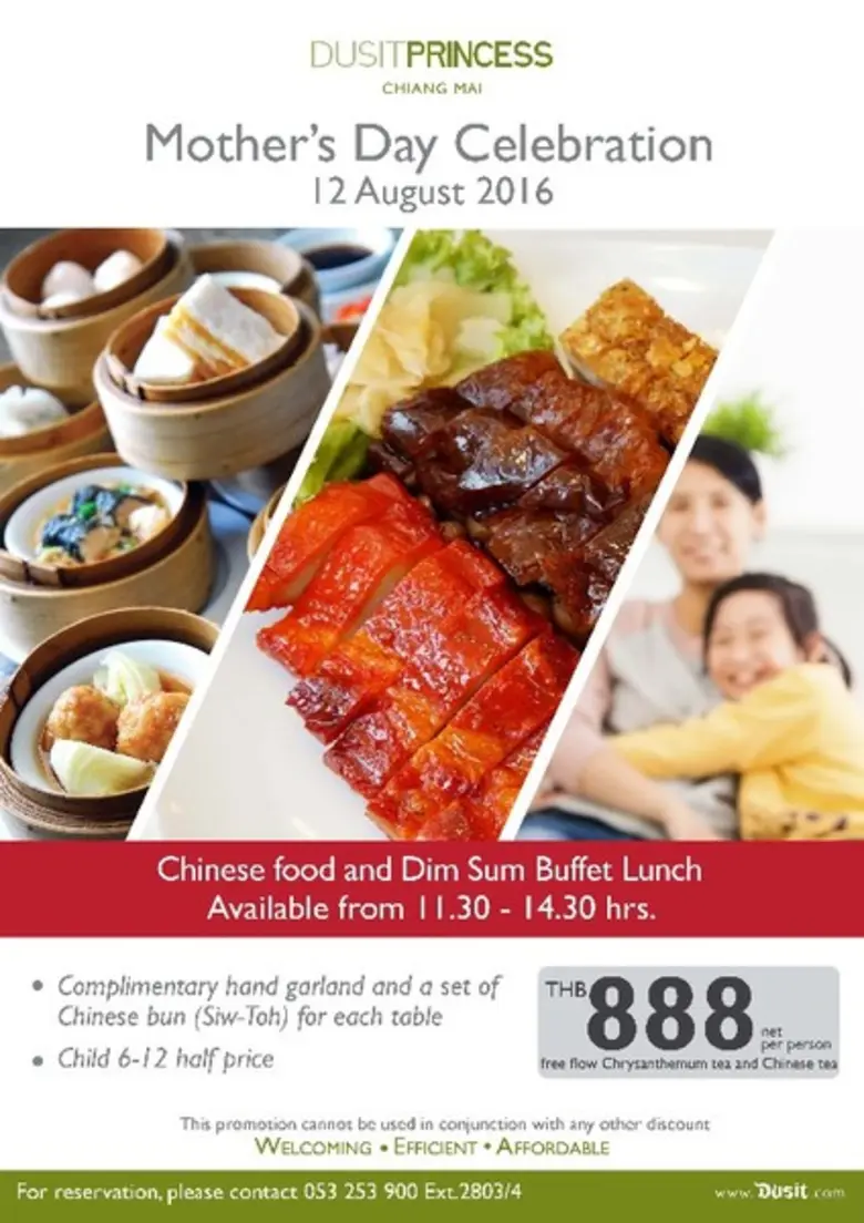 วันแม่นี้ ชวนคุณและคุณแม่ อิ่มท้องและอิ่มใจกับบุฟเฟ่ต์อาหารจีน-ติ่มซำ มื้อเที่ยง ที่ห้องอาหารจัสมิน, โรงแรมดุสิตปริ๊นเซส เชียงใหม่