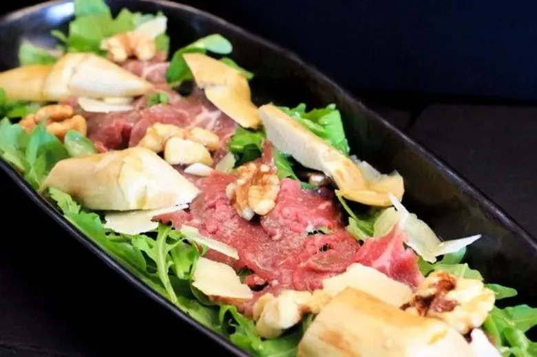 เมนูขาแกะเนื้อนุ่มคลุกเคล้ากับถั่วพิสตาชิโอและซอสซึ่งปรุงจากชีสทาเลโจ ให้กลิ่นหอมหวลชวนรับประทาน เสิร์ฟคู่กับอาร์ติโชกและมันฝรั่งอบ