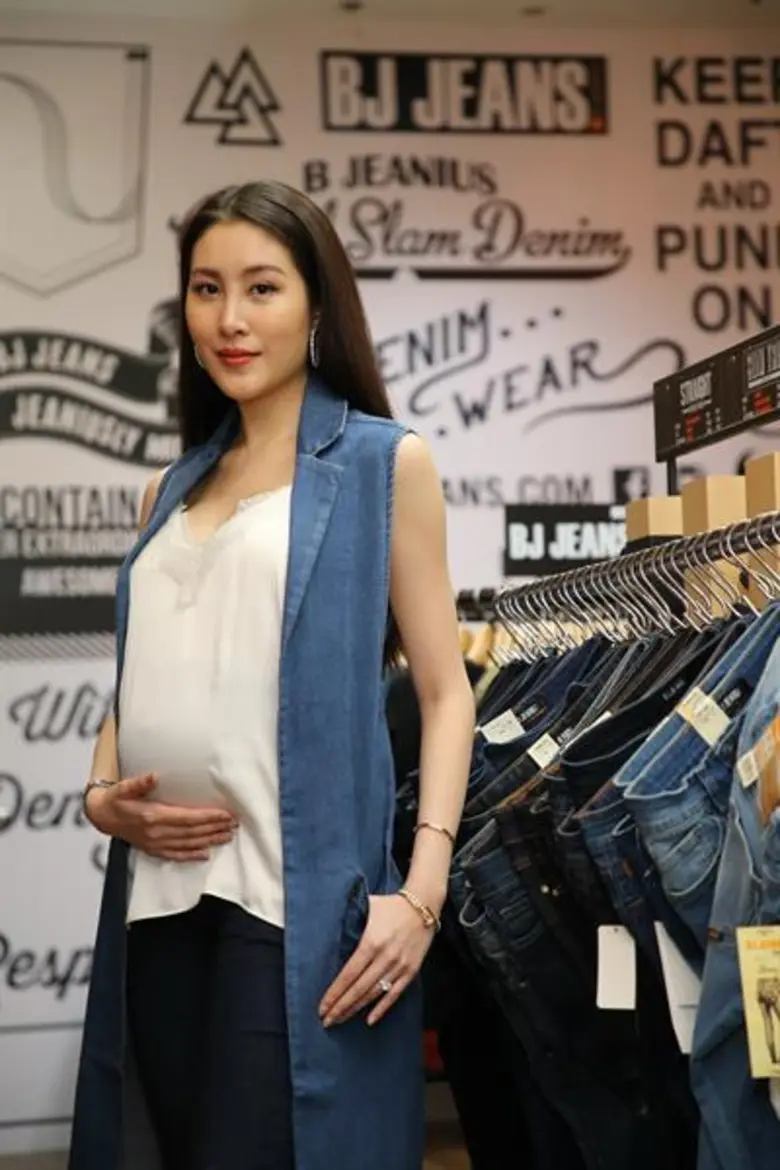 โดยส่วนตัวเป็นคนรักแฟชั่นชอบแต่งตัวสไตล์มิกซ์แอนด์แมตช์ เพราะรู้สึกว่าสนุก ตอนนี้เราก็สามารถ สวมกางเกงยีนส์สำหรับคนท้อง ที่มีดีไซน์หลากหลายมาก กับเสื้อตัวยาวเพื่อปิดช่วงหน้าท้อง หรือเสื้อสายเดี่ยว ตัวโปรด การตั้งครรภ์จึงไม่เป็นอุปสรรค สำหรับคุณแม่อย่างเรา จะหยิบยีนส์ที่เป็นไอเทมสุดคลาสสิกมาใส่เมื่อไหร่ไม่มีเอ้าท์แน่นอนค่ะ"