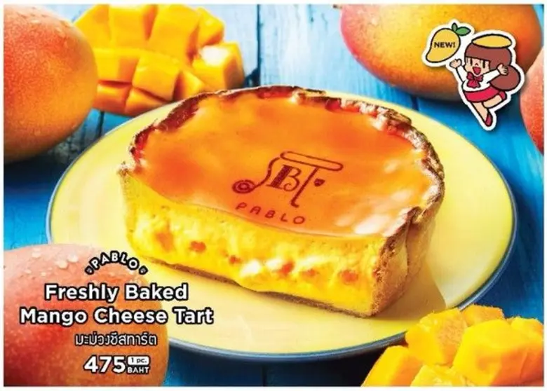 "PABLO X MAMUANG" คือ คอลเลคชั่นที่เป็นการ collaborate กันระหว่าง PABLO Cheese Tart และ Mamuang Chan หนึ่งในคาแรคเตอร์ชื่อดังจากฝีมือของคุณตั้ม วิศุทธิ์ ที่ขนขบวนพาเหรด "มะม่วง" มายกเซ็ต เริ่มจาก "PABLO Mango Cheese Tart" ชีสทาร์ตรสมะม่วง ที่ผสมผสานระหว่างเนื้อชีสเข้มข้น และ Mango Puree Jam เข้าด้วยกัน ให้เนื้อสัมผัสนุ่มละมุนสไตล์ PABLO Cheese Tart แต่ให้รสชาติหวานอมเปรี้ยวจากมะม่วงแท้ "PABLO Mango Cheese Tart" จะเริ่มวางจำหน่ายพร้อมกันกับที่ญี่ปุ่น ในวันที่ 15 กรกฎาคมนี้ ราคาชิ้นละ 475 บาท ส่วน "PABLO Mini Mango" ชีสทาร์ตรสมะม่วงแบบมินิ ที่ให้รสชาติหอมมันจากชีสทาร์ต และให้ความสดชื่นในทุกคำจากเนื้อมะม่วง และซอสมะม่วงที่อยู่ด้านบน ซึ่งพิเศษสุดๆเพราะมีวางจำหน่ายเฉพาะที่ประเทศไทยที่เดียวเท่านั้น ในราคาชิ้นละ 95 บาท และปิดท้ายด้วย "PABLO X MAMUANG UMBRELLA" ร่มน้องมะม่วงจัง ผลงานการดีไซน์ของคุณตั้ม วิศุทธิ์ โดยตัวการ์ตูนของน้องมะม่วงจังบนร่มนี้ ได้รับแรงบันดาลใจมาจากพนักงานของ PABLO ที่ร่าเริงสดใส และมี Positive Attitude โดยผลิตในจำนวนจำกัดแบบ Limited Edition