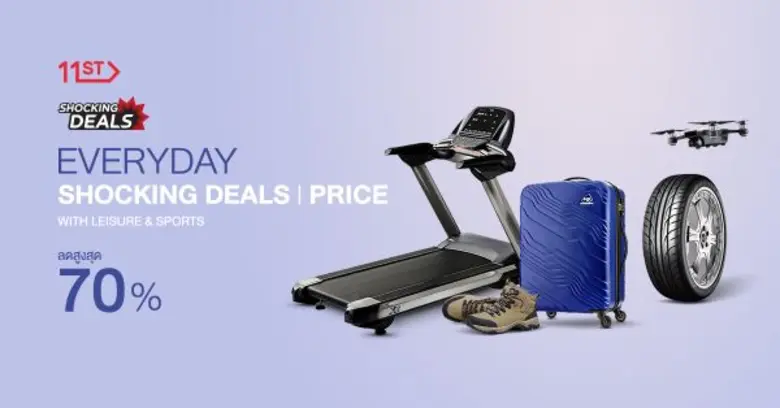 เพื่อตอกย้ำความนิยมของโปรโมชั่น Shocking Deals ในเดือนกันยายนนี้ สินค้านันทนาการและอุปกรณ์กีฬาขนมาลดราคาส่งท้ายกับส่วนลดสูงสุด 70% กับโปรโมชั่น "Everyday Shocking Deal with Leisure & Sports" หลากหลายรายการสินค้าเพื่อการออกกำลัง ท่องเที่ยว และกิจกรรมยามว่าง อาทิ อุปกรณ์ออกกำลังกาย ลู่วิ่งไฟฟ้า จักรยานนั่งปั่น เบาะนั่งซิทอัพ รองเท้าออกกำลังกาย เสื้อกีฬาแบรนด์ดัง ถุงนอน กระเป๋าเดินทาง และโดรน ที่ขนมาลดราคาแบบสุดๆ ช้อปได้แล้วตั้งแต่วันนี้ – 30 กันยายน 2560 นี้