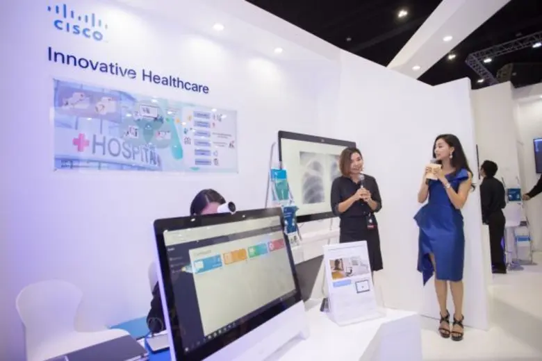 Innovation Healthcare: โซลูชั่น เกี่ยวกับการบริหารจัดการโรงพยาบาล เพิ่มความสะดวกให้คุณหมอ พยาบาลและเจ้าหน้าที่ในโรงพยาบาลให้ทำงานได้อย่างราบรื่น ผ่านเทคโนโลยี Cisco SPARK, Cisco Cloud, Messaging, Meeting, Calling ฯลฯ โดยโซลูชั่นทางด้านการแพทย์นี้ช่วยให้การเชื่อมต่อแพทย์ ผู้ป่วย และข้อมูลสุขภาพเข้าด้วยกัน ทำให้เกิดการรักษาพยาบาลในลักษณะประสานความร่วมมือกันและกัน โดยเชื่อมต่อบุคลากรที่เหมาะสมเข้ากับข้อมูลผู้ป่วยในแบบไดนามิก เพื่อความรวดเร็วในการรักษาพยาบาล ลดความซ้ำซ้อนในการทำงาน ช่วยพัฒนาการให้บริการ ควบคู่ไปกับการควบคุมค่าใช้จ่าย เช่น กรณีคุณหมอที่จะต้องรักษาคนไข้ สามารถดูรายละเอียดข้อมูลคนไข้ที่ไหนก็ได้ ผ่านแอพ เมื่อเจอคนไข้ก็สามารถเชื่อมโยงข้อมูลนั้นเข้าระบบ พร้อมให้คำแนะนำ และการรักษาที่รวดเร็วขึ้น