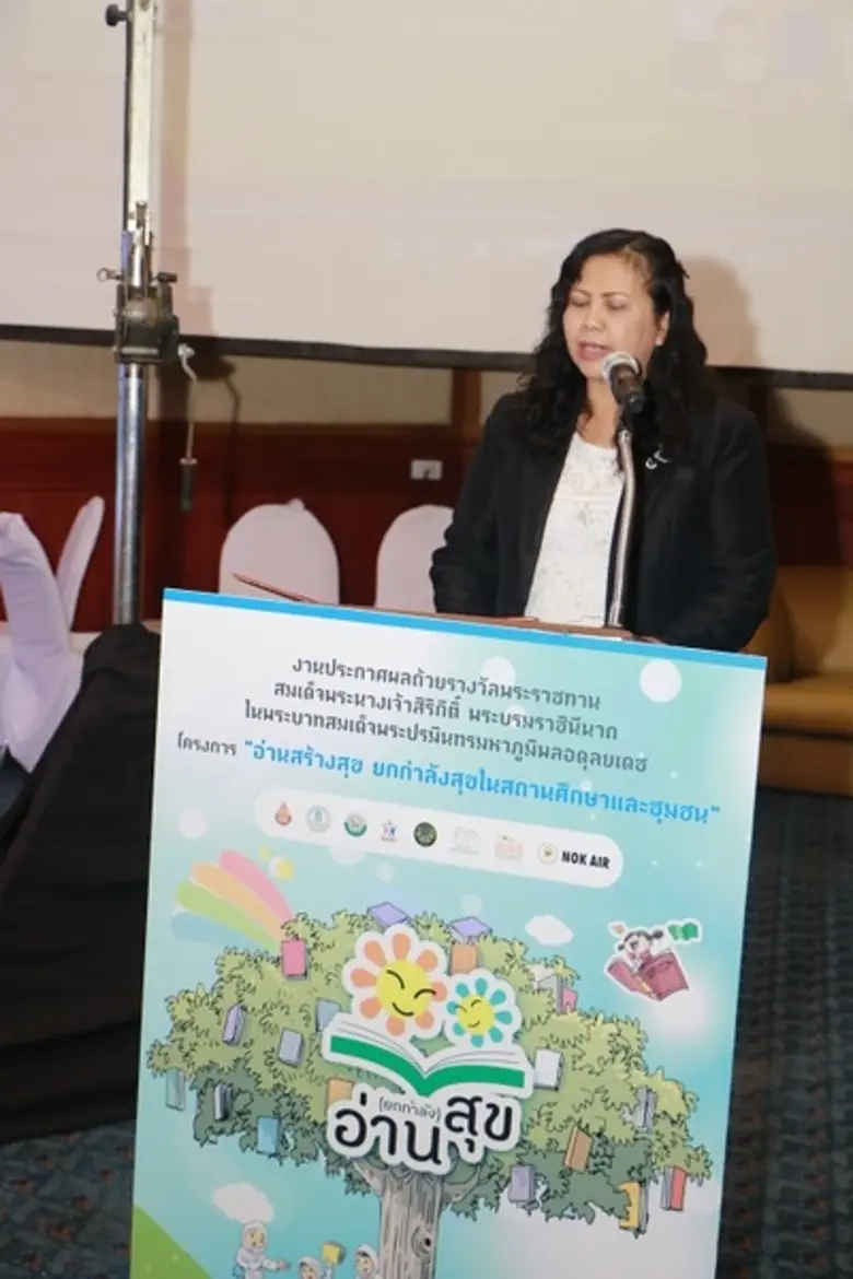 นางมัทนา ถนอมพันธ์ หอมลออ ประธานกรรมการ คณะกรรมการ กำกับทิศทางแผนระบบสื่อและวิถีสุขภาวะทางปัญญา (คณะที่ ๕ สสส.) กล่าวว่า "โครงการ อ่านสร้างสุข ยกกำลังสุขในสถานศึกษาและชุมชน จัดขึ้นเพื่อมุ่งสร้างเสริมระบบการอ่าน ให้เอื้อต่อกระบวนการเรียนรู้สู่สังคมสุขภาวะ โดยสอดคล้องกับบริบท ด้วยแนวคิด "การอ่านสร้างสุข" โครงการนี้ ได้รับความร่วมมือทั้งจาก ผู้บริหาร ครู ผู้นำชุมชน แกนนำเด็กและเยาวชน ทำให้เกิดกิจกรรมส่งเสริมการอ่านในสถานศึกษาและชุมชนอย่างหลากหลาย"