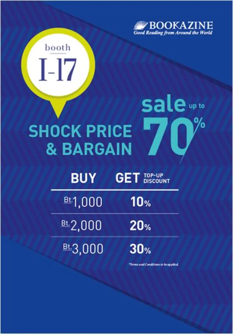 และ บุ๊คกาซีน (บูธ I 17) พบกับหนังสือและโปรโมชั่นส่วนลดสูงสุดถึง 70%