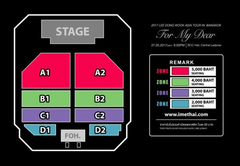 ราคาบัตร: 5,000 / 4,000 / 3,000 และ 2,000 บาท (tentative)