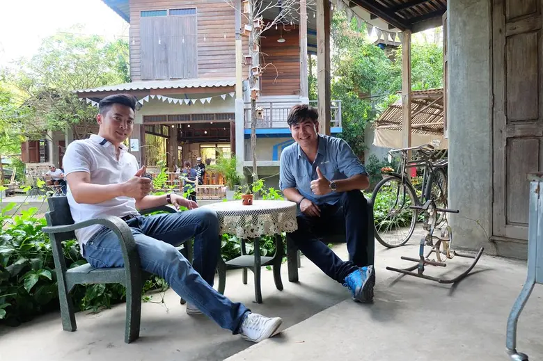 ยังไม่ทันไร สองหนุ่มก็เกิดอาการหิวขึ้นมาซะแล้ว งี้จะรอดไหม? แวะร้านก๋วยเตี๋ยวลีลา(leela noodle) ที่นายโกโม้ให้ฟังว่าเคยมาเรียนทำอาหารที่นี่ จึงขอโชว์ฝีมือทำก๋วยเตี๋ยวรสเด็ดให้พี่ชายจ๊อบได้ทานกัน หลังจากอิ่มท้องแล้ว(หรือเปล่า) ก็ได้ฤกษ์ออกเดินทางท่องเที่ยวตามสถานที่ต่างๆ ในเชียงใหม่สักที เอาฤกษ์เอาชัยกันสักหน่อย เพื่อความเป็นสิริมงคล ไหว้พระขอพร วัดหมื่นเงินกอง ที่คนส่วนใหญ่นิยมมาไหว้ขอพรเรื่องเงินๆ ทองๆ ตามชื่อของวัดเลย โดยเฉพาะเรื่องการค้าขายให้เจริญรุ่งเรือง นอกจากนี้ยังได้ชื่นชมกับสถาปัตยกรรมของวัดหมื่นเงินกองที่เป็นทรงล้านนาไทยหอคำหลวงอีกด้วย ออกเดินทางกันต่อที่บ้านข้างวัด แหล่งช้อปปิ้งสไตล์พื้นเมือง ซึ่งออกแบบสิ่งก่อสร้างภายในเป็นแบบไม้ครึ่งท่อน และชั้นล่างเป็นปูนแบบเปลือย โดยมีร้านค้าขนาดเล็กๆ ตั้งอยู่ติดๆ กัน มีสินค้าหลากหลายรูปแบบ ตั้งแต่ร้านกาแฟ คาเฟ่ ขนมหวาน โปสการ์ด ของที่ระลึก ผลงานศิลปะ รับรองว่าถูกใจนักท่องเที่ยวสไตล์ชิคๆ คูลๆ แน่นอน หลังจากเดินทางท่องเที่ยวทั้งวันมาผ่อนคลายกันหน่อยที่ โรงเรียนบ้านหอมสมุนไพร หลายคนคงคิดว่าต้องมาเจอกับเรื่องราวสมุนไพรแบบเดิมๆ หรือเปล่า ขอบอกว่าที่นี่ไม่ธรรมดาเลย เพราะบ้านหอมสมุนไพรแห่งนี้เป็นที่นิยมของชาวต่างชาติมากๆ ถึงกับมีการจองคิวข้ามปีกันเลยทีเดียว แถมยังเป็น 1 ใน 7 การท่องเที่ยวโดยชุมชน ที่เข้าร่วมโครงการประกวดสร้างสรรค์ชุมชนท่องเที่ยว Green Rangers โดย CreativeMOVE อีกด้วย นอกจากความหลากหลายของพืชสมุนไพรแล้ว ยังได้เรียนรู้เรื่องราวการทำผลิตภัณฑ์ ปรุงยาจากพืชสมุนไพร ทั้งยาหม่อง ยาแก้ไอ ลูกประคบ การทำขนมไทย หรือจะเรียนรู้การนวดแบบต่างๆ ก็สามารถเลือกได้ตามใจชอบเลย
