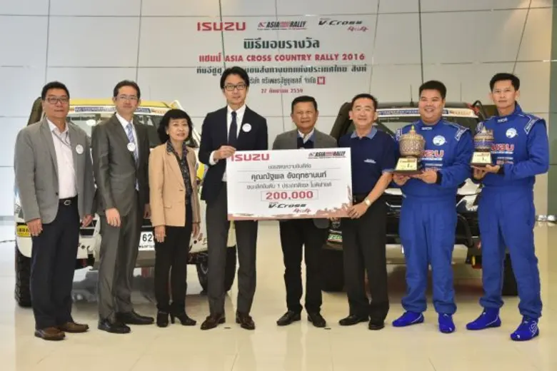 มร. โทชิอากิ มาเอคาวะ กรรมการผู้จัดการ บริษัท ตรีเพชรอีซูซุเซลส์ จำกัด เผยว่า "อีซูซุขอแสดงความยินดีกับความสำเร็จของนักแข่งชาวไทย "ทีมอีซูซุ สมาคมขนส่งทางบกแห่งประเทศไทย สิงห์" ในการแข่งขัน "เอเชียครอสคันทรีแรลลี่ 2016" ซึ่งเป็นการแข่งขันแรลลี่รถยนต์และรถจักรยานยนต์ครอสคันทรีระดับนานาชาติที่ได้รับการยอมรับในมาตรฐาน และจัดแข่งขันต่อเนื่องนานถึง 21 ปี ซึ่งปีนี้แข่งขันรวม 6 วัน สตาร์ทจากเมืองพัทยา จังหวัดชลบุรี – จันทบุรี – ตราด – เกาะกง – สีหนุวิลล์– พนมเปญ และสิ้นสุดการแข่งขันที่นครวัด เมืองเสียมเรียบ ประเทศกัมพูชา รวมระยะทางทั้งสิ้นกว่า 2,500 กม. โดย "อีซูซุดีแมคซ์ บลูเพาเวอร์ วี-ครอส 4x4" ที่สุดของสปอร์ตออฟโรด ร่วมลงสนาม ตอกย้ำความแข็งแกร่งของนวัตกรรมเครื่องยนต์ดีเซลระดับโลกคว้าแชมป์ทั้งสิ้นรวม 6 รางวัล อีซูซุจึงได้มอบเงินรางวัลสนับสนุนเพิ่มเติม 200,000 บาท แก่ นายณัฐพล อังฤทธานนท์ พร้อมผู้นำทาง น.อ.พีรพงษ์ สมบัติวงศ์ ที่สามารถคว้าแชมป์โอเวอร์ออล, แชมป์ประเภทเครื่องยนต์ดีเซลโมดิฟายด์ (T1D) และเงินรางวัลจำนวน 50,000 บาท แก่ นายวงษ์วิโรจน์ ปาลวัฒน์ พร้อมผู้นำทาง นายธันยพัต มีนิล แชมป์ประเภทเครื่องยนต์ดีเซล สแตนดาร์ด (T2D) และอันดับ 3 โอเวอร์ออล นอกจากนี้ ทีมอีซูซุ สมาคมขนส่งทางบกแห่งประเทศไทย สิงห์ ยังสามารถคว้าแชมป์อันดับ 1 ประเภททีมได้อีกเช่นกัน"