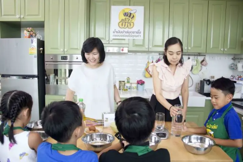 ธิดารัตน์ ควรทรงธรรม กรรมการบริษัท กลุ่มปาล์มธรรมชาติ กล่าวว่า กิจกรรมนี้เป็นส่วนหนึ่งของความสำคัญในการดำเนินธุรกิจของน้ำมันปาล์มตราผึ้งที่ควบคู่ไปกับการส่งเสริมความรู้ ความเข้าใจในเรื่องโภชนาการที่ดีของเยาวชนไทย และเป็นโครงการต่อยอดแนวคิดมาจากโครงการ 'ผึ้งทุนธรรมชาติ เพื่ออาหารกลางวันในโรงเรียน' ที่ได้ทำมาอย่างต่อเนื่อง และสำหรับปีนี้ ได้สานต่อโครงการดังกล่าว จัดเวิร์คช็อป โครงการ 'ผึ้งชวนน้องเข้าครัว - - ปรุงด้วยรัก เพิ่มทักษะการเรียนรู้' สำหรับเด็กๆ วัย 7 ขวบ ด้วยความเชื่อว่า เมื่อเด็กๆ ได้เรียนรู้และลงมือทำในสิ่งที่ตนเองรัก คุณค่าทางใจและกายย่อมเกิดขึ้นอย่างสร้างสรรค์ ว่าแล้วน้องๆ ทั้ง 5 คนในวัยสดใส พร้อมแล้วที่จะร่วมกันบรรเลงขนมแสนอร่อย 'คัพเค้กผึ้ง' โดยมีคุณครูใจดี 'ออม-อัญมณี ภู่ภักดี' ที่มีดีกรีในการทำอาหารและเบเกอรี่ แนวศิลปะจากประเทศญี่ปุ่น มาช่วยสอนน้องๆ พร้อมเติมเต็มทักษะต่างๆ สู่จินตนาการสร้างสรรค์ที่จะทำให้เด็กๆ ได้ปล่อยพลังกันเต็มที่ เมื่อน้องๆ ได้สร้างสรรค์เค้กฝีมือของตัวเองเรียบร้อยแล้ว หลังจากนั้นนำมาจัดแต่งด้วยผึ้งและปักธงเพิ่มความเก๋ไก๋ คราวนี้น้องๆ ส่งเสียงวิ้วว้าว กันยกใหญ่- - "โอ้..มาย ก๊อด ทำได้ไงเนี่ย! คัพเค้กแสนอร่อย" ว่าแล้วยิ้มน้อยยิ้มใหญ่ รีบเก็บใส่กล่องเอาไปฝากคุณพ่อคุณแม่ และคนที่บ้านให้ลิ้มลองรสมือของตนเอง มหัศจรรย์ของการ 'ปรุงด้วยรัก เพิ่มทักษะการเรียนรู้' สู่จินตนาการแห่งการสร้างสรรค์ที่ให้ทั้งความรู้ ความสนุก ความรัก และความภูมิใจที่ได้แสดงออก เพื่อเสริมสร้างเยาวชนรุ่นใหม่เปี่ยมคุณภาพ