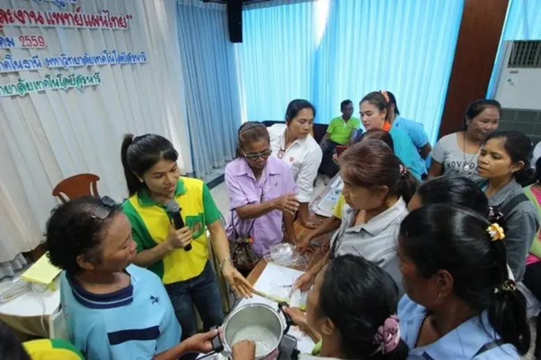 กิจกรรมถ่ายทอดเทคโนโลยีประกอบด้วย การสาธิตขั้นตอนต่างๆ ในการทำยาหม่อง พิมเสนน้ำ และยาดมจากสมุนไพร นอกจากนี้ยังมีการสาธิตทำสบู่สมุนไพร 4 ชนิด ประกอบด้วย สบู่ขมิ้น สบู่ฟักข้าว สบู่อัญชัน และสบู่มะขาม โดยให้ผู้เข้าร่วมการอบรม จำนวน 70 คน ได้นำไพล ขมิ้น ตะไคร้ และมะกูด มาเป็นส่วนประกอบในการทำยาหม่อง พิมเสนน้ำ และยาดมจากสมุนไพร