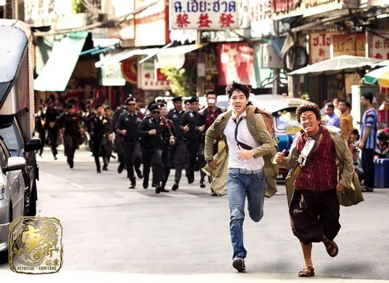 ซึ่งเรื่องย่อของภาพยนตร์ Detective Chinatown (ดีเทคทีฟ ไชน่าทาวน์) จะบอกเล่าเรื่องราวของ หนุ่มจีนติดอ่างอย่าง ฉินฟง ที่ถูกส่งมาตามหาลุงชื่อ ถังเหริน ในเมืองไทยแถวย่านเยาวราช โดยถังเหรินตกเป็นผู้ต้องสงสัยคดีอาชญากรรม จนทำให้ฉินฟงต้องจำเป็นต้องหนีตามลุงไปด้วย ซึ่งก็มี เฟิงโกว่ และพรรคพวกเจ้าพ่อไฮโซเป็นนักสืบคอยตามสืบคดี จึงทำให้ทั้งฉินฟงและถังเหรินต้องหลบหนีการไล่ล่าของทั้งตำรวจ มาเฟีย และเจ้าพ่อในเวลาเดียวกัน การันตีความฮาโดย Chen Sicheng (เฉิน ซือเฉิง ผู้กำกับ)