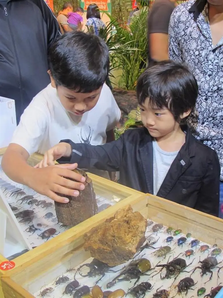 ส่วนน้องปลาวาฬ – ด.ช. พงศธร ไม้กลัด วัย 10 ขวบก็บอกว่า เขาชอบอ่านเนื้อหาที่นิทรรศการจัดไว้ เพราะหลายเรื่องเป็นเรื่องที่เขาไม่เคยรู้มาก่อนเลย แม้ว่าจะชอบแมลงและเลี้ยงด้วงกว่างไว้ที่บ้านด้วยก็ตาม