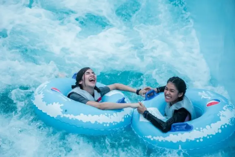 จากนั้น แนท กับ จีน่า ก็ขอไปแปลงร่างอยู่ในชุดพร้อมลุย ซานโตรินี พาร์ค วอเตอร์เว็นเจอร์ สวนน้ำที่รวบรวบเครื่องเล่นที่พร้อมให้ 2 สาวได้ไปเปิดประสบการณ์ความมันส์ที่พีคสนุกสุดเหวี่ยง โดยเครื่องเล่นที่ แนท และ จีน่า เลือกเล่นคือ 3 เครื่องเล่นใหม่ที่เปิดบริการล่าสุด เริ่มด้วย ทอร์นาโด สไลเดอร์ทอร์นาโด ที่ 2 สาว จะต้องถูกเหวี่ยงไปมา เสมือนถูกดูดเข้าไปในงวงพายุทอร์นาโด ก่อนที่ แนท และ จีน่า จะหลุดออกมาสู่บ่อน้ำที่นิ่งสงบ ซึ่งคนที่ดูจะสนุกสนานเกินหน้าเกินตาเห็นจะหนีไม่พ้น แนท เพราะชอบเล่นอะไรที่โลดโผนเป็นทุนเดิมอยู่แล้ว งานนี้ จีน่า เลยขอเป็นผู้ตามน้องสาวที่ดี เพราะแอบกลัวความสูงอ่อนๆ ทำเอา แนท แอบขำ จีน่า เบาๆ จากนั้นไม่รอช้า แนท รีบไปหยิบ ห่วงยางคล้องตัวแล้ววิ่งออกไปล่องแก่ง แต่ก็ไม่ลืมที่จะจูงมือ จีน่า ไปเล่นด้วยกันกับ เครซี่ ริเวอร์ เครื่องเล่นที่ต้องโดนสายน้ำเชี่ยวกราด และคลื่นยักษ์ถาถมเข้าใส่อย่างไม่หยุดยั้ง จีน่า บอกตื่นเต้นสุดๆ ช่วงจังหวะที่คลื่นโหมใส่ตัวเองเป็นอะไรที่ ตื่นเต้นมาก สาดความมันส์ให้พีคขึ้นอีกกับ สติงเรย์ เคิร์ฟ เซิร์ฟ เครื่องเล่นเสิร์ฟจำลอง ที่ทำให้ แนท และ จีน่า ฟินประหนึ่งออกไปเล่นเซิร์ฟกลางทะเล จบกิจกรรมในสวนน้ำ แม้จะดูดพลัง 2 สาวไปเกือบหมด แต่นานทีปีหนจะได้มาเที่ยวกันแบบนี้ 2 สาวเพื่อนซี้เลยยังไม่หมดกิจกรรมที่ทำด้วยกันง่ายๆ เพราะหลังจากเล่นเครื่องเล่นในสวนน้ำฯ จนหน่ำใจแล้ว ทั้ง แนท และ จีน่า ก็ขอพักเบรกมาทำกิจกรรมสุดชิล ด้วยการจัดสวนในขวดแก้ว ซึ่งงานนี้คนที่ดูจะมีภาษีมากกว่าก็คือ จีน่า เพราะเป็นคนชอบประดิษฐ์ประดอย แต่ แนท ก็ไม่ยอมแพ้ ใส่ไอเดียลงไปในขวดแก้วเต็มที่ ผลออกมาก็สวยกันคนละแบบ คนละสไตล์ "โดยปกติเรา 2 คนจะเจอกันตามแคทวอล์ค งานเดินแบบอยู่เป็นประจำ จนกลายเป็นคู่พี่น้องที่สนิทกันคู่หนึ่ง แต่นานๆ ถึงจะมีโอกาสได้มาเที่ยวด้วยกัน ก็เลยขอจัดกิจกรรมที่ทำด้วยกันเต็มที่เลยค่ะ" จีน่า กล่าวอย่างอารมณ์ดี